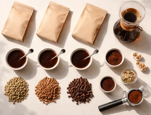 Çekirdek seçimi de belirleyicidir: yüksek asiditeli yıkanmış çekirdekler Swiss Water veya CO2 ile parıldarken, EA ile işlenmiş doğal işleme görmüş çekirdekler yoğun gövde ve kakao notalarını vurgulayabilir. Demleme tarafında daha ince öğütüm, dekafeinizasyon yöntemleri kaynaklı hafif geçirgenlik artışını dengelemeye yardımcı olur. Blendlerde, düşük kafeinli espresso hedefi için %50-70 decaf karışımları işlevsel olabilir. Seçiminizi çekirdek kökeniyle birlikte düşünmek için kahve çekirdek türleri yazımız faydalı olacaktır.